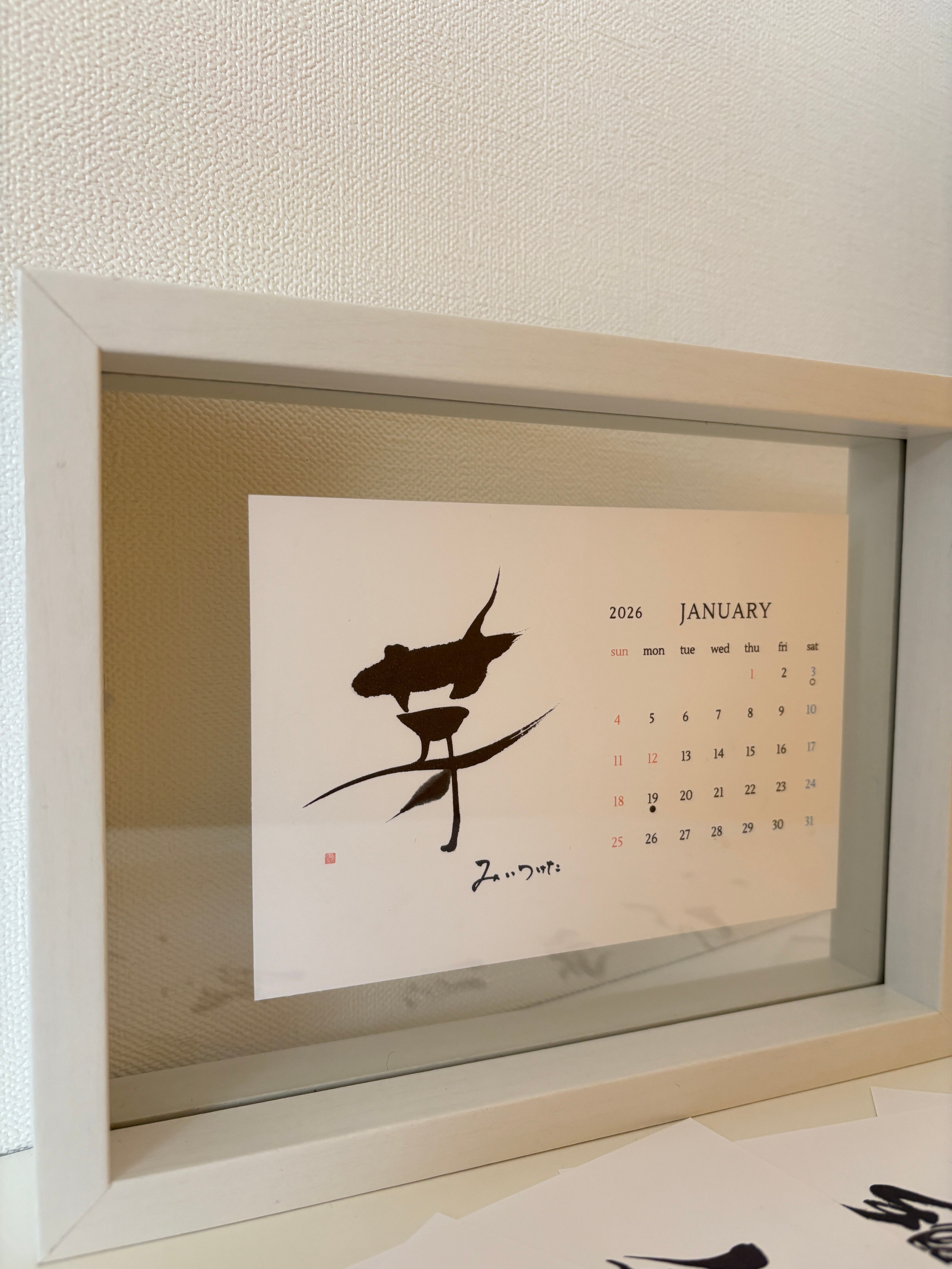 翌月になっても半分にカットして、お気に入りの文字は飾っていただけます。